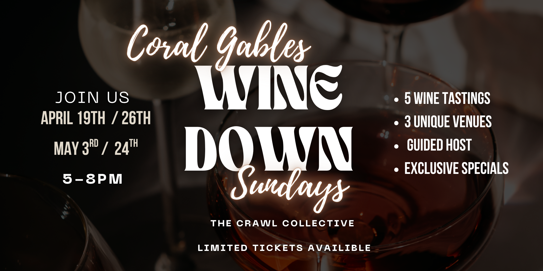 We’ll visit 4 prime locations during our guided crawls, each offering a complimentary cocktail or wine tasting. Along the way, enjoy curated storytelling, light Coral Gables history, and exclusive drink specials reserved for the group.